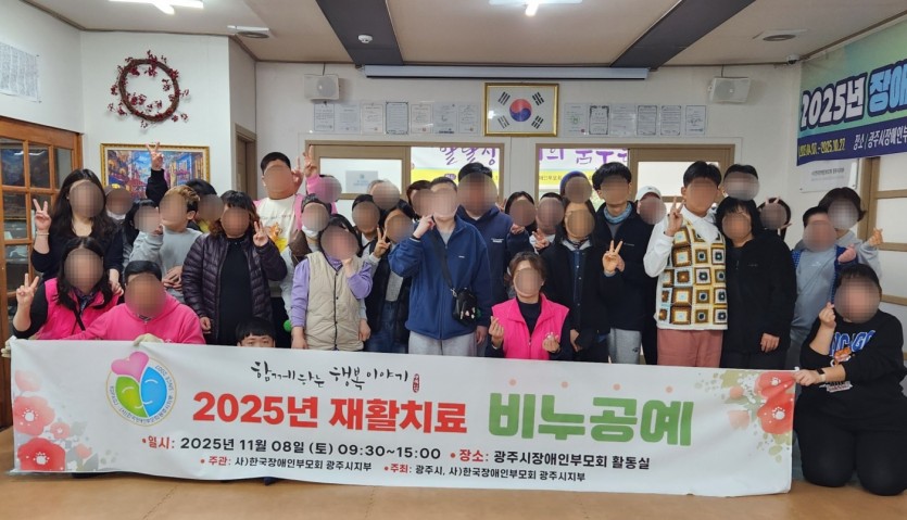 재활치료"비누공예" 2025.11.08.토 페이지 정보 작성자 부모회 댓글 0건 조회 94회 작성일 25-11-11 16:31 목록 본문 행사일: 2025년 11월 8일 토요일재활치료 프로그램으로 비누공예를 진행했습니다.향기로운 비누를 만들며 마음의 여유와 즐거운 힐링의 시간을 보냈습니다!! 이전글2025년 광주시장애인총연합회 워크숍 및 비전 발표회_11월 18일 화요일(문경새재) 25.11.19 다음글제41회 전국장애인부모대회(2025.11.06.목) 25.11.11 댓글 0 댓글목록 등록된 댓글이 없습니다.