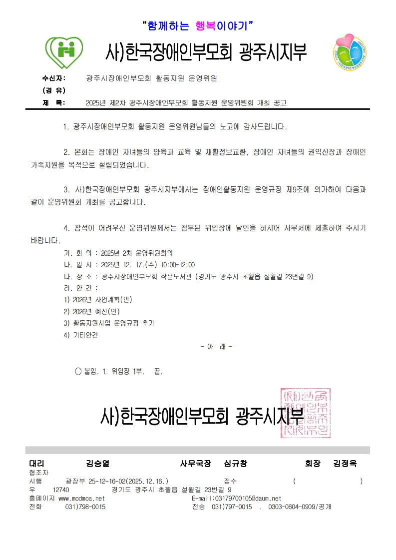 2025년 제2차 활동지원 운영위원회 개최 공고 > 공지사항