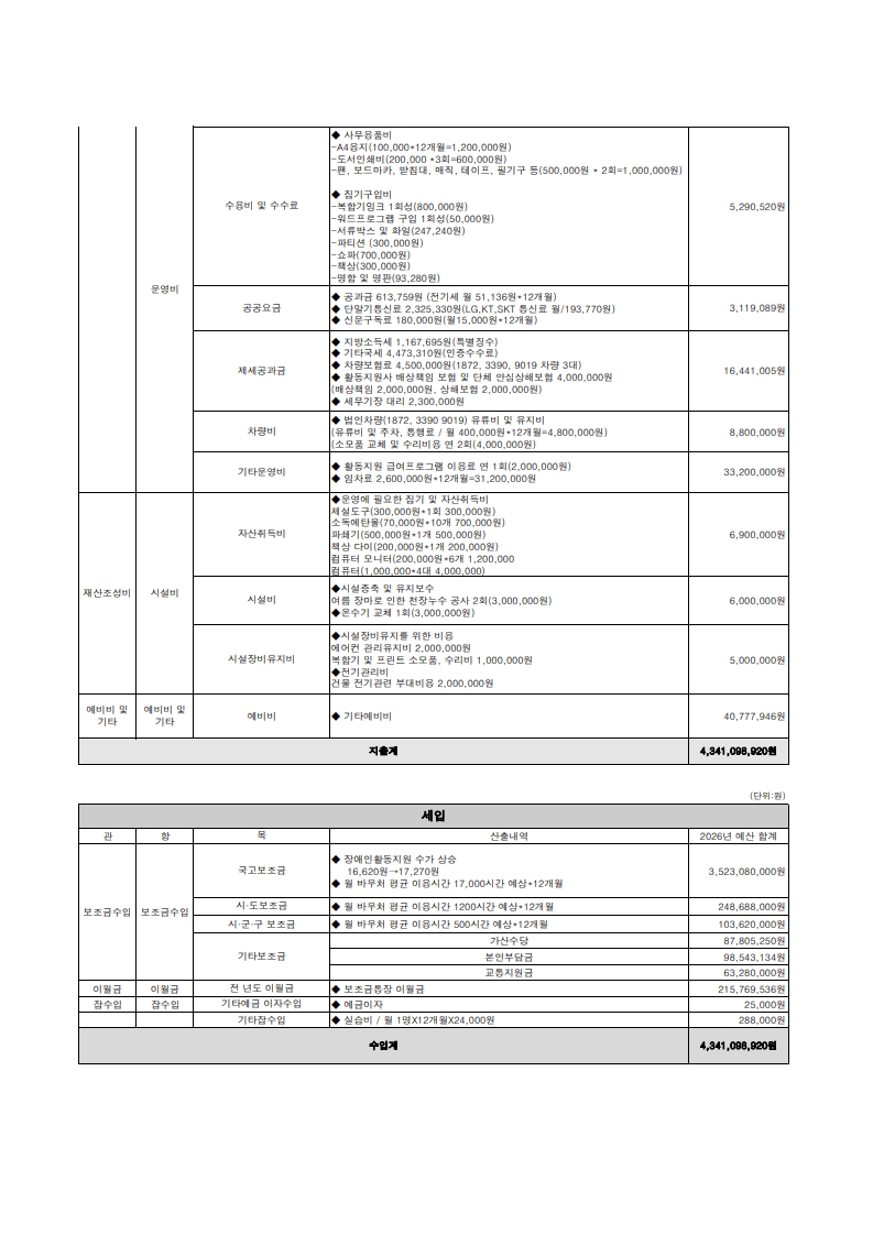 장애인활동지원 2026년 활동지원사업 예산(안)