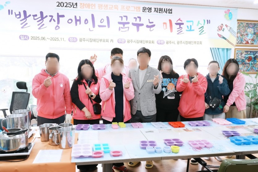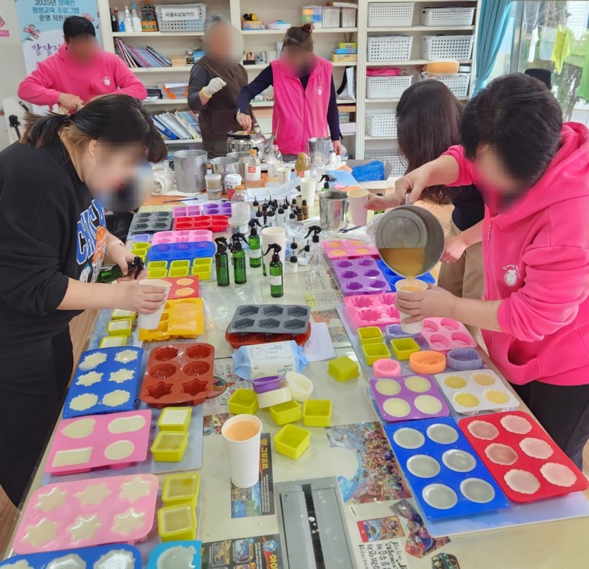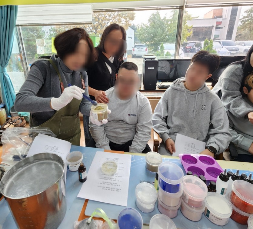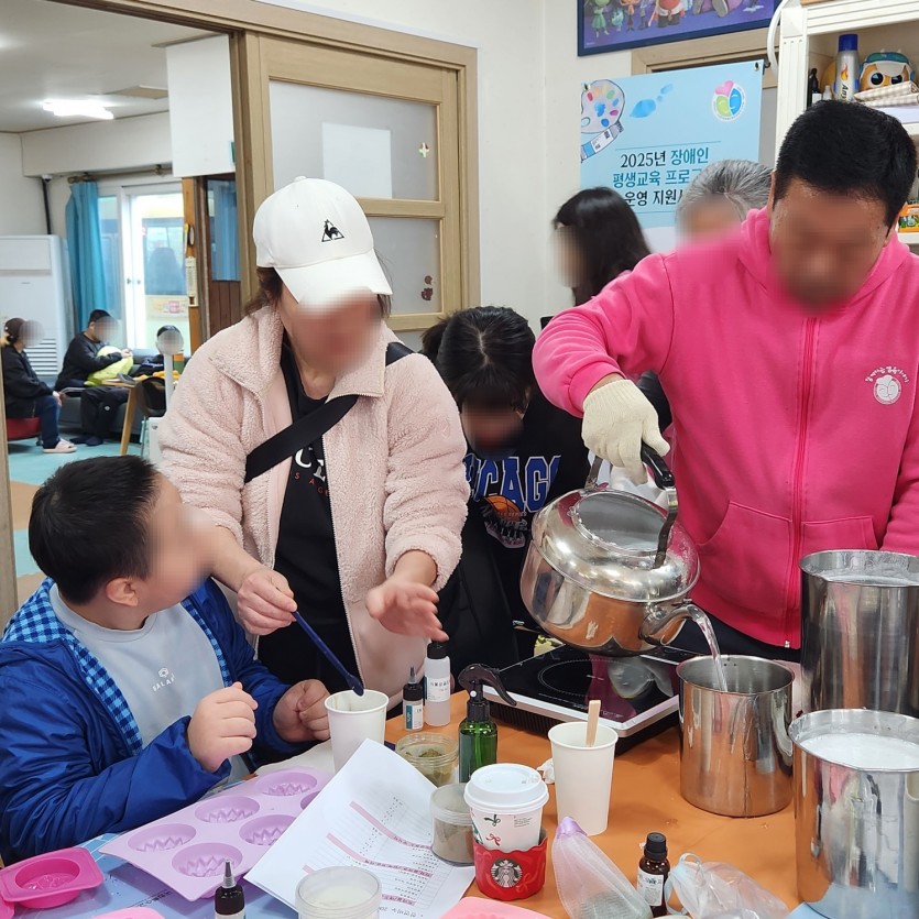 재활치료"비누공예" 2025.11.08.토 페이지 정보 작성자 부모회 댓글 0건 조회 70회 작성일 25-11-11 16:31 목록 본문 행사일: 2025년 11월 8일 토요일재활치료 프로그램으로 비누공예를 진행했습니다.향기로운 비누를 만들며 마음의 여유와 즐거운 힐링의 시간을 보냈습니다!! 이전글2025년 광주시장애인총연합회 워크숍 및 비전 발표회_11월 18일 화요일(문경새재) 25.11.19 다음글제41회 전국장애인부모대회(2025.11.06.목) 25.11.11 댓글 0 댓글목록 등록된 댓글이 없습니다.